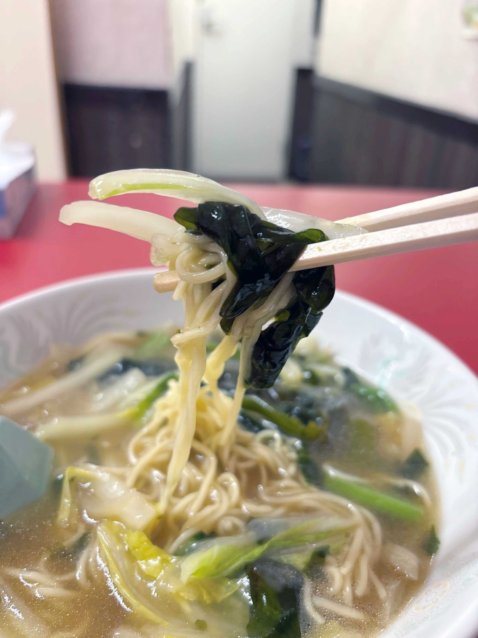 猿麺をお見せしましょ。見事にワカメ色です。