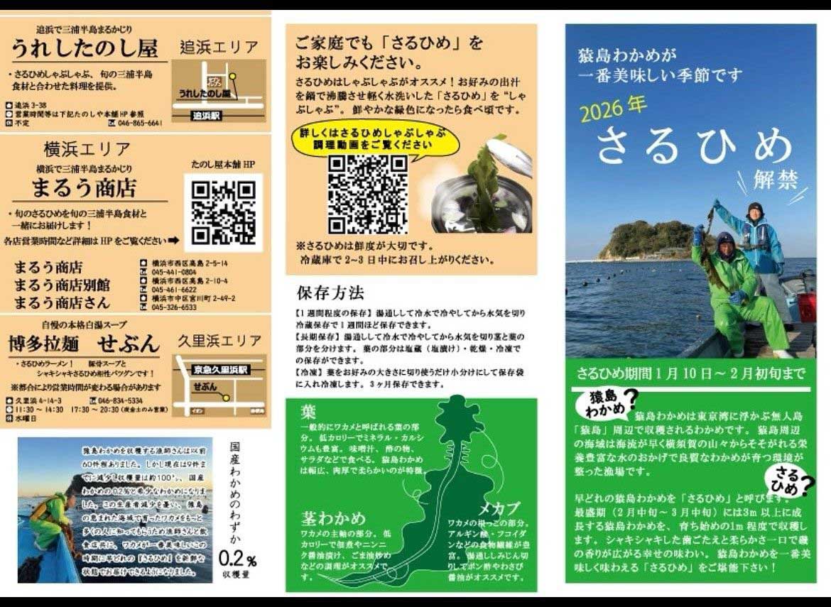 そして繰り返しになりますが、「猿島わかめ」は塩蔵わかめとして通年食べられますが、「さるひめ」は2月初旬までの期間限定、季節ものですので、お気を付けください。
