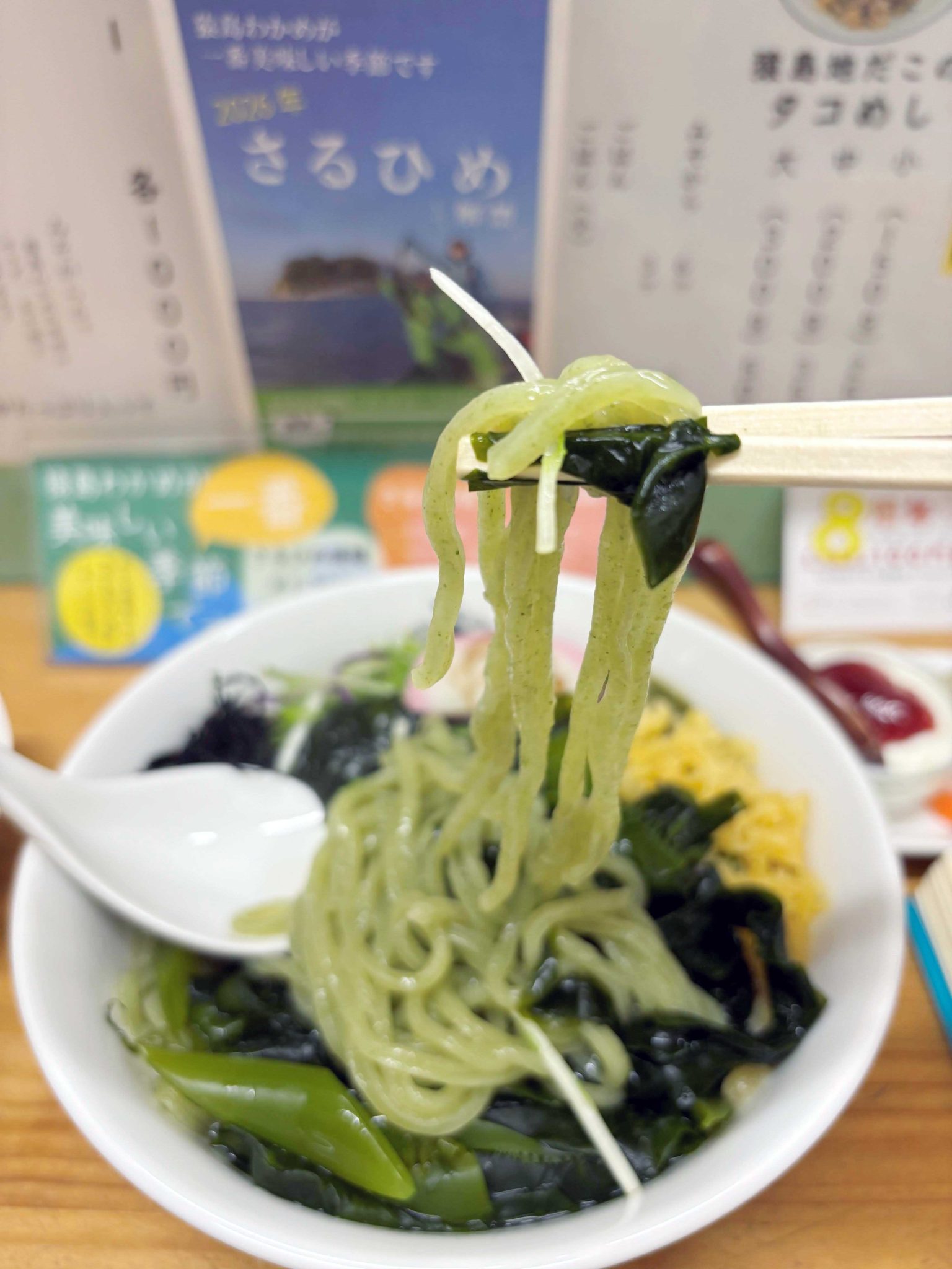 その「さるけん」で開発、商品化した猿島わかめを練りこんだ「猿麺」をメインにした店に移行。